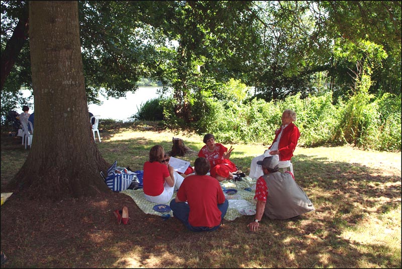 | Pique-nique ... Après un apéritif offert par l’AFLA : Les groupes se constituent par affinité ... de couleurs ??? et partagent le contenu des « caisses popote » En voici quelques uns. Les intéressés se reconnaîtront : |