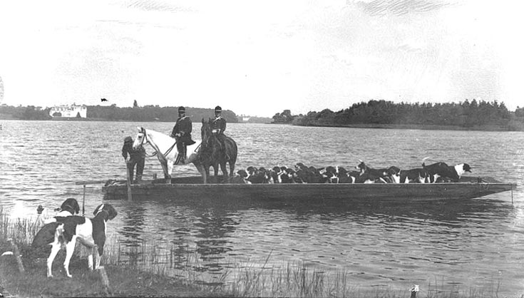 Exercice de traversée de l'Erdre en 1900 Le comité d’organisation du Débuché 2006 fit le choix de reconstituer cet entraînement. La mission était d’une clarté absolue, mais il fallait la mener à bien ! Trouver les cavaliers, les chiens et chevaux, étaient très faciles, mais trouver l’engin capable de faire flotter le tout, était beaucoup plus compliqué. La décision prise, le projet et la méthode furent très rapidement établis, et après avoir fait fabriquer et approvisionner les éléments nécessaires à la construction, celle-ci débuta le 1er juin 2006.