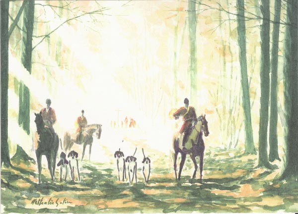 Je présentais ma production personnelle à ma nouvelle famille, (aquarelles et huiles représentant des scènes de courses et de vénerie, ainsi que des portraits d’enfants).